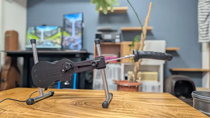 先に紹介した2つのピストンマシンは高性能ですが、組み立てが必要だったり、角度の調整は少し面倒な時があります。